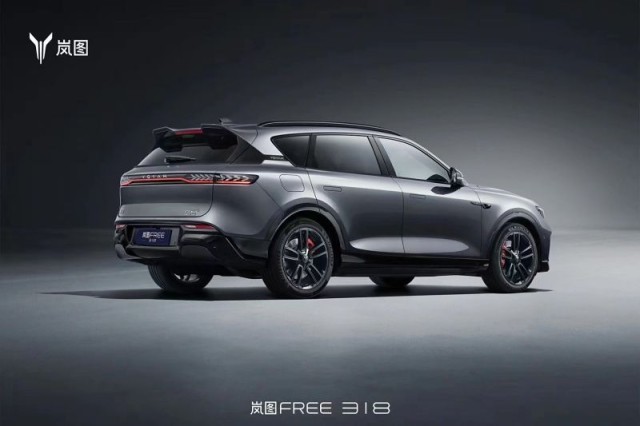 嵐圖FREE 318的車側(cè)與車尾也進(jìn)一步“黑化”,運(yùn)動(dòng)化輪圈內(nèi)還采用了紅色制動(dòng)卡鉗,此外,新車尾部激進(jìn)的尾翼也為整體視覺效果增色不少,給人很強(qiáng)的視覺質(zhì)感。