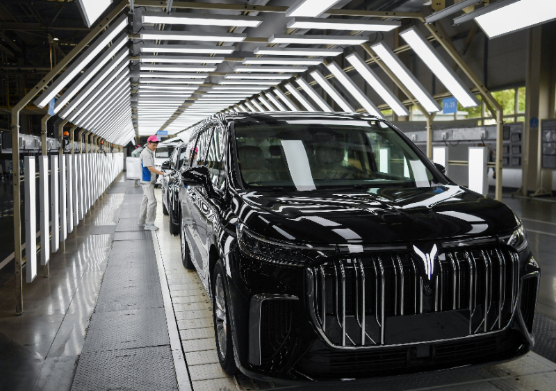 (資料圖片)在嵐圖汽車總裝車間,工人在流水線上作業(yè)。新華社記者 杜子璇 攝