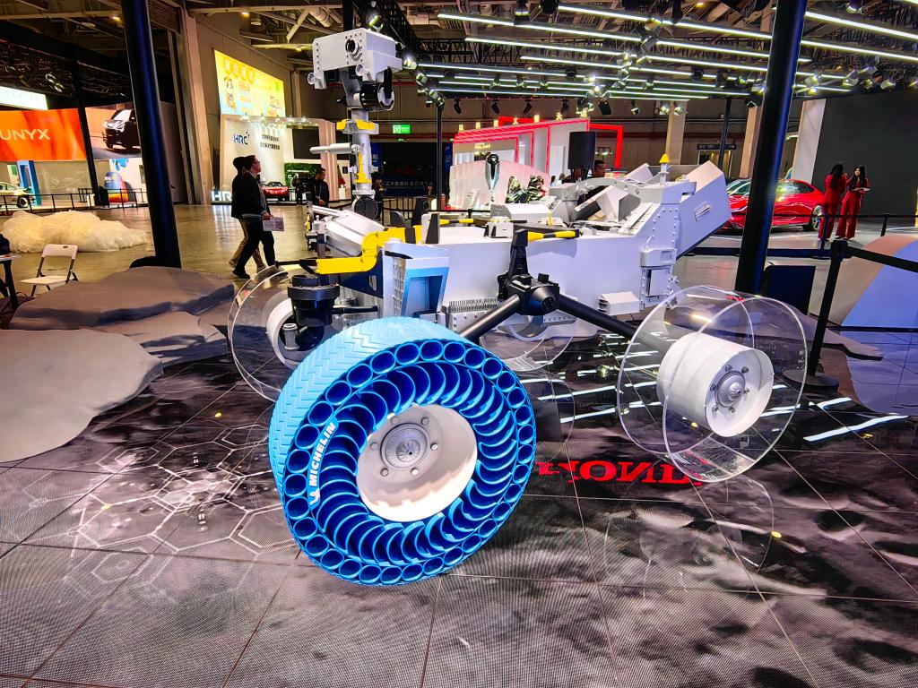 進(jìn)博會(huì)期間,米其林將亞洲首發(fā)一款月球探測車專用的免充氣輪胎。新華社記者周蕊 攝