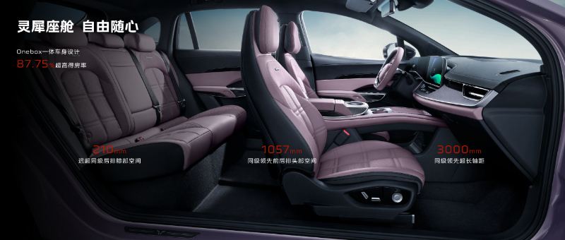 天工08致力于為用戶提供大空間極致舒享體驗。它擁有同級領先的87.75%得房率、前后排1057mm的超大頭部空間、遠超同級的210mm二排膝部空間,身高1.8m的用戶坐在后排也可實現(xiàn)腿部活動自由,全家出行、一路暢享。