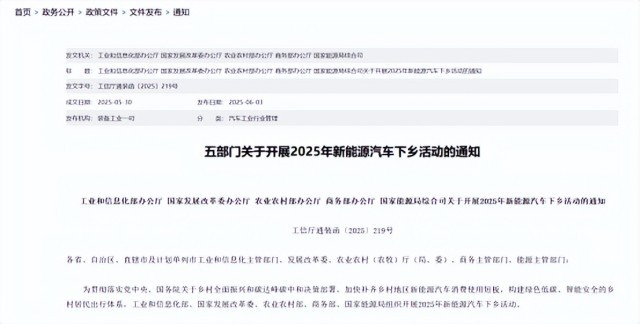 【環(huán)球網(wǎng)財經(jīng)綜合報道】6月3日,工業(yè)和信息化部等五部門聯(lián)合發(fā)布通知,開展2025年新能源汽車下鄉(xiāng)活動,以補(bǔ)齊鄉(xiāng)村新能源汽車消費(fèi)短板,構(gòu)建綠色出行體系。