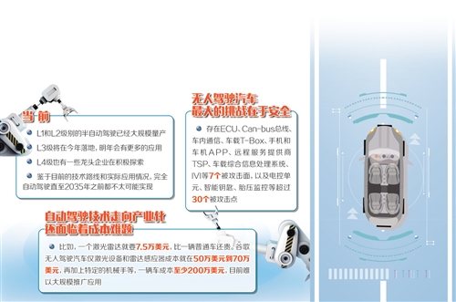 當(dāng)前,L1和L2級(jí)別半自動(dòng)駕駛已經(jīng)大規(guī)模量產(chǎn);L3級(jí)將在今年落地,明年會(huì)有更多應(yīng)用;L4級(jí)也有一些龍頭企業(yè)在積極探索。但是,針對(duì)“2030年左右就可實(shí)現(xiàn)無(wú)人駕駛產(chǎn)業(yè)化”的預(yù)測(cè),專(zhuān)家則持謹(jǐn)慎態(tài)度。要真正實(shí)現(xiàn)完全意義上的無(wú)人駕駛,還面臨著安全、成本等一系列難題,需要產(chǎn)業(yè)界和全社會(huì)合力推動(dòng)解決。
