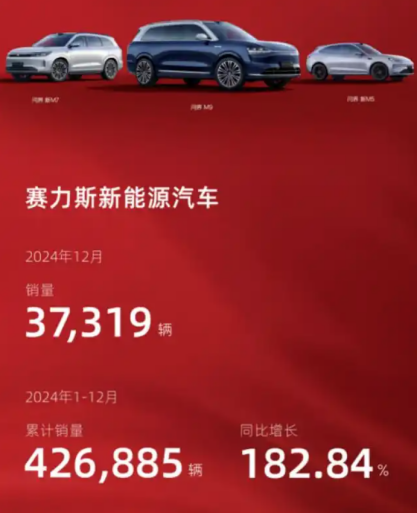 根據(jù)中國汽車工業(yè)協(xié)會發(fā)布的數(shù)據(jù),2024年,我國新能源汽車產(chǎn)銷量分別達1288.8萬輛和1286.6萬輛,同比分別增長34.4%和35.5%,保持快速增長。同時,2024年新能源汽車新車銷量達到汽車新車總銷量的40.9%,較2023年提高9.3個百分點。繼續(xù)成為中國汽車工業(yè)的重要增長點。在風起云涌的新能源汽車市場中,賽力斯以其卓越的表現(xiàn),成為了一顆閃亮的明星。數(shù)據(jù)顯示,賽力斯2024年12月新能源汽車銷量達37319輛;1-12月新能源汽車累計銷量達426885輛,全年新能源汽車銷量同比增長高達182.84%。這一驚人的增長速度不僅彰顯了賽力斯在新能源汽車領(lǐng)域的強勁實力,也為其未來的發(fā)展奠定了堅實基礎(chǔ)。從技術(shù)、營銷、體驗等多個角度來看,賽力斯品牌的向上躍升之路充滿了亮點。