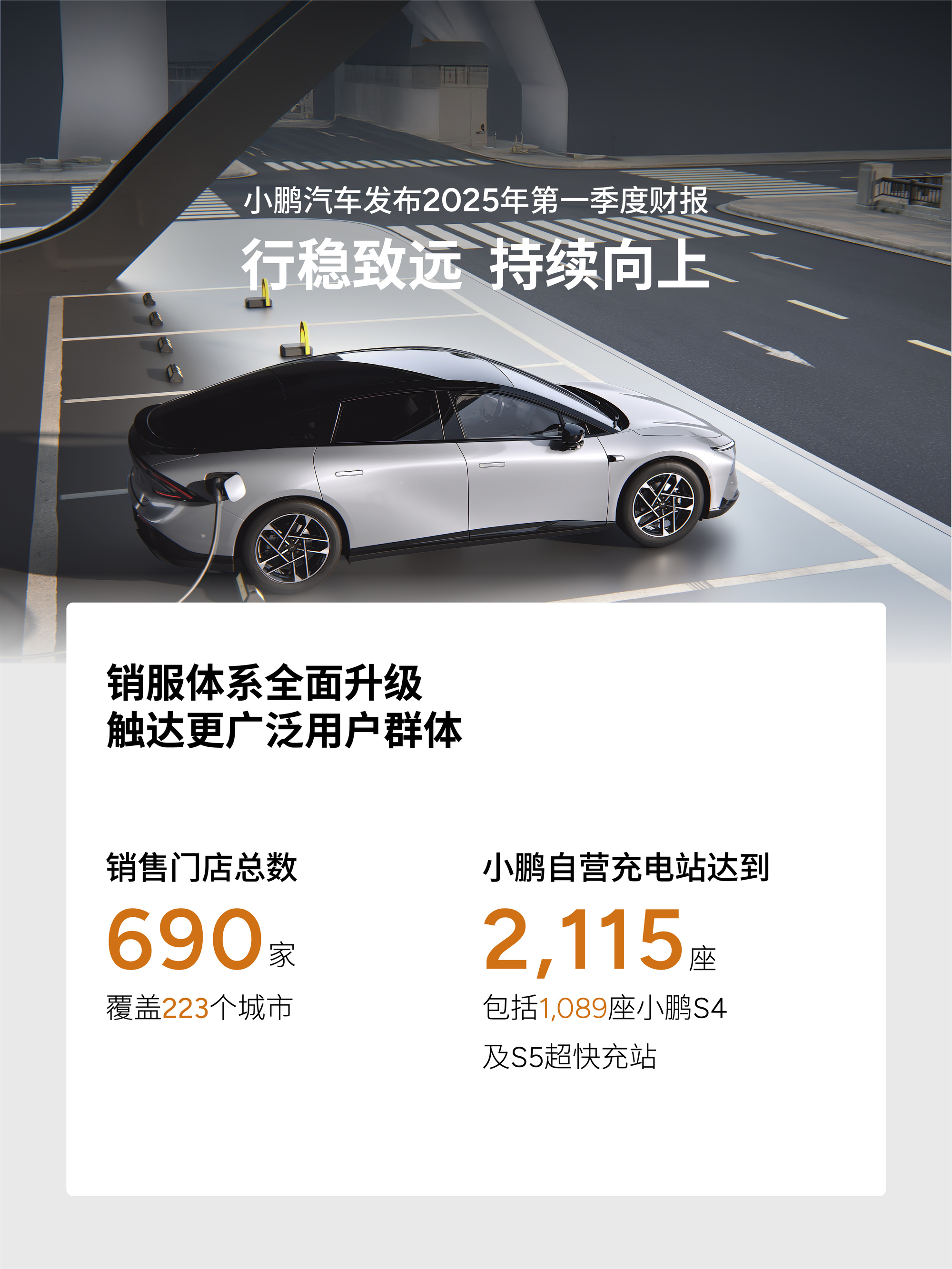 (廠商供圖,央廣網(wǎng)發(fā)) 并不是所有車(chē)企都能做到。2025年,新能源市場(chǎng)還在保持增長(zhǎng),中國(guó)汽車(chē)工業(yè)協(xié)會(huì)數(shù)據(jù)顯示,一季度新能源累計(jì)銷(xiāo)量達(dá)到307.5萬(wàn)輛,同比增長(zhǎng)47.1%,但這并沒(méi)有帶來(lái)良好的財(cái)務(wù)反饋,從蔚來(lái)到極氪都面臨營(yíng)收、凈利潤(rùn)、毛利率等相關(guān)財(cái)務(wù)數(shù)據(jù)壓力,背后折射的是中國(guó)新能源如何走出既有銷(xiāo)量也有利潤(rùn)的可持續(xù)發(fā)展之路。 擁有自我造血,才是一家車(chē)企持續(xù)發(fā)展的核心能力。 疑問(wèn)拋給小鵬汽車(chē)?!昂诵氖俏覀?cè)诮M織、產(chǎn)品、營(yíng)銷(xiāo),以及技術(shù)、經(jīng)營(yíng)的體系化綜合能力的不斷提高,這也是小鵬堅(jiān)持技術(shù)上的AI驅(qū)動(dòng),經(jīng)營(yíng)上行穩(wěn)致遠(yuǎn)的初步成效?!毙※i汽車(chē)2025年一季度財(cái)報(bào)業(yè)績(jī)溝通會(huì)上,小鵬汽車(chē)董事長(zhǎng)、CEO何小鵬將突破歸于技術(shù)驅(qū)動(dòng)。 為此佐證的是,小鵬汽車(chē)在業(yè)內(nèi)有著智能化標(biāo)簽,并從誕生以來(lái)就不斷智能化技術(shù)突破,在智能駕駛、交互體驗(yàn)、萬(wàn)物互聯(lián)等領(lǐng)域持續(xù)投入,布局了AI汽車(chē)、AI機(jī)器人、AI飛行汽車(chē)和芯片技術(shù)。 這是在錯(cuò)綜復(fù)雜的市場(chǎng)競(jìng)爭(zhēng)中戰(zhàn)略抉擇和堅(jiān)定,更是一種國(guó)家堅(jiān)信——從頂層設(shè)計(jì)角度而言,技術(shù)創(chuàng)新是推動(dòng)高質(zhì)量發(fā)展的核心動(dòng)能,也是打造新質(zhì)生產(chǎn)力的核心支撐,其中人工智能則是引領(lǐng)新一輪科技革命和產(chǎn)業(yè)變革的戰(zhàn)略性創(chuàng)新技術(shù)。 小鵬汽車(chē)則以市場(chǎng)與資本表現(xiàn)展示著智能化在引領(lǐng)產(chǎn)業(yè)變革的“頭雁效應(yīng)”?!肮緦⒃谒募径茸呦蛴瑢?shí)現(xiàn)全年規(guī)模自由現(xiàn)金流?!闭业椒较蚝吐窂降暮涡※i帶著小鵬汽車(chē)正追逐下一程。 1、財(cái)務(wù)上揚(yáng)、銷(xiāo)量突破 喜報(bào),總會(huì)來(lái)的早一點(diǎn)。 5月21日,小鵬汽車(chē)發(fā)布一季度財(cái)報(bào)數(shù)據(jù),總收入為158.1億元,較去年同期增長(zhǎng)141.5%;毛利率達(dá)15.6%,創(chuàng)下歷史新高,較去年同期增長(zhǎng)2.7%;汽車(chē)毛利率達(dá)10.5%,較去年同期增長(zhǎng)5%,實(shí)現(xiàn)連續(xù)七個(gè)季度增長(zhǎng)。 小鵬汽車(chē)透露,截至2025年3月31日,現(xiàn)金及現(xiàn)金等價(jià)物、受限制現(xiàn)金、短期投資及定期存款為452.8億元,相較2024年12月31日凈增超33億元?!拔覀兊某杀究刂颇芰Υ蠓鰪?qiáng)”小鵬汽車(chē)副董事長(zhǎng)及聯(lián)席總裁顧宏地現(xiàn)場(chǎng)表示。 這也意味著,小鵬汽車(chē)正逐步不需借助外部輸血,就能持續(xù)向前。 這對(duì)當(dāng)下新能源發(fā)展是一種觸動(dòng)。目前,整個(gè)汽車(chē)市場(chǎng)都在激烈比拼,然而對(duì)于大多汽車(chē)企業(yè)而言,規(guī)模提升與利潤(rùn)增長(zhǎng)似乎很難兼顧。去年,蔚來(lái)汽車(chē)在交付量、營(yíng)收雙增長(zhǎng)的情況下,全年凈虧損依然在擴(kuò)大。長(zhǎng)城汽車(chē)董事長(zhǎng)魏建軍近期更是直言,純電動(dòng)車(chē)領(lǐng)域大面積虧損,商業(yè)模式很難持續(xù)。 小鵬汽車(chē)如何實(shí)現(xiàn)?事實(shí)上,它也有市場(chǎng)層面的支撐。 一季度,小鵬以94008輛的交付成績(jī),成為新勢(shì)力第一名,同比增幅超過(guò)300%。其中小鵬MONA M03上市8個(gè)月累計(jì)交付超10萬(wàn)輛,P7+上市5個(gè)月已完成第5萬(wàn)輛正式下線(xiàn),2025款G6和G9也在4月交付超7500輛。目前,小鵬汽車(chē)交付量連續(xù)6個(gè)月在3萬(wàn)輛以上。 為了支持銷(xiāo)售,小鵬汽車(chē)正在加快銷(xiāo)售與充電網(wǎng)絡(luò)布局。截至3月31日,小鵬汽車(chē)擁有共計(jì)690家門(mén)店,覆蓋223座城市;自營(yíng)充電站網(wǎng)絡(luò)進(jìn)一步擴(kuò)展至2115座充電站,包括1089座小鵬S4及S5超快充站。