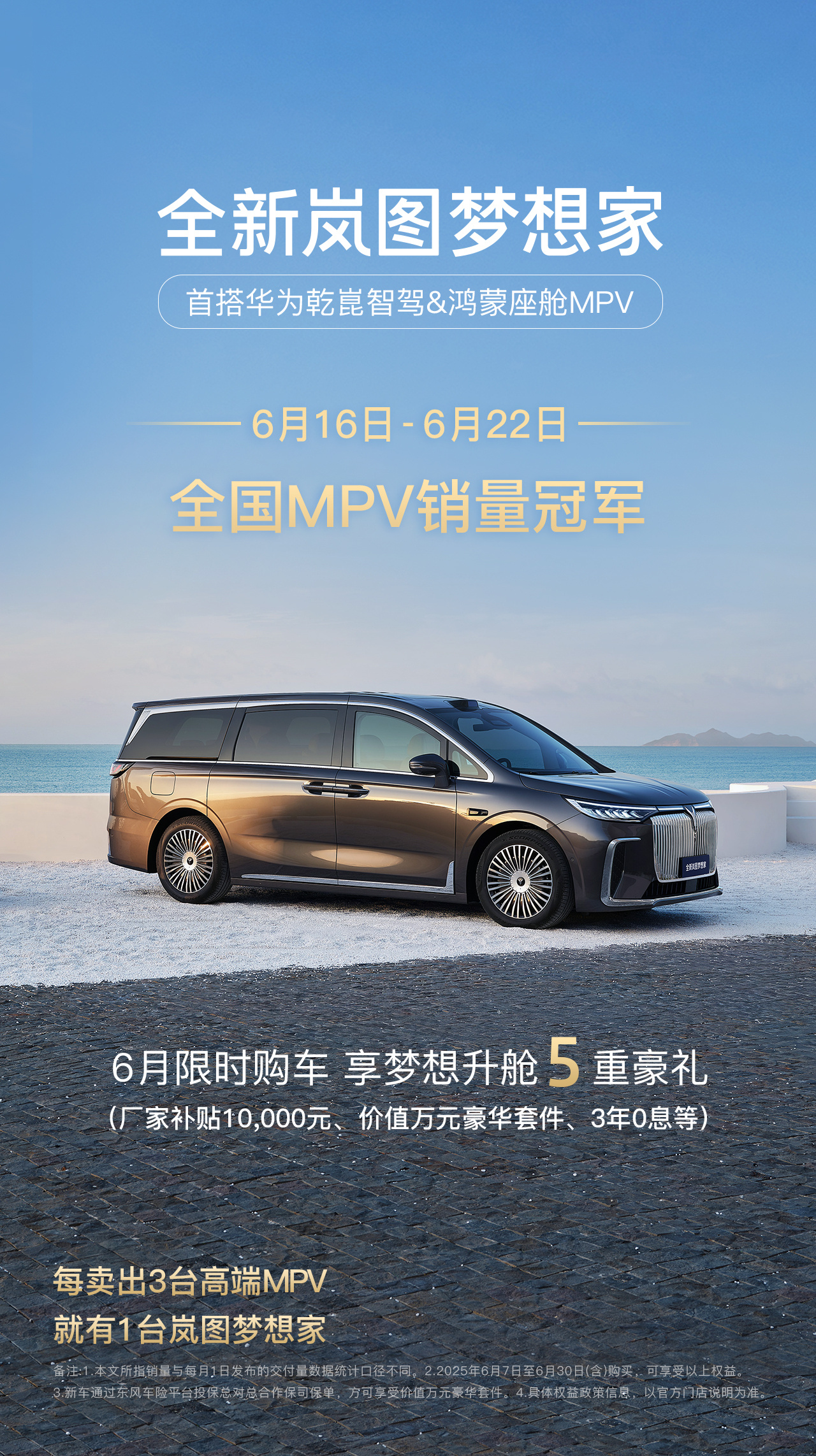 央廣網(wǎng)北京6月24日消息(記者姜鵬)6月24日,6月第三周(6月16日-22日)MPV周銷量榜單揭曉!嵐圖夢想家憑借強大的產(chǎn)品力,以單周2720輛再奪MPV銷量冠軍,不僅超越騰勢D9、高山等新能源對手,更超越GL8、賽那等傳統(tǒng)燃油MPV,持續(xù)鞏固細分市場標(biāo)桿地位。