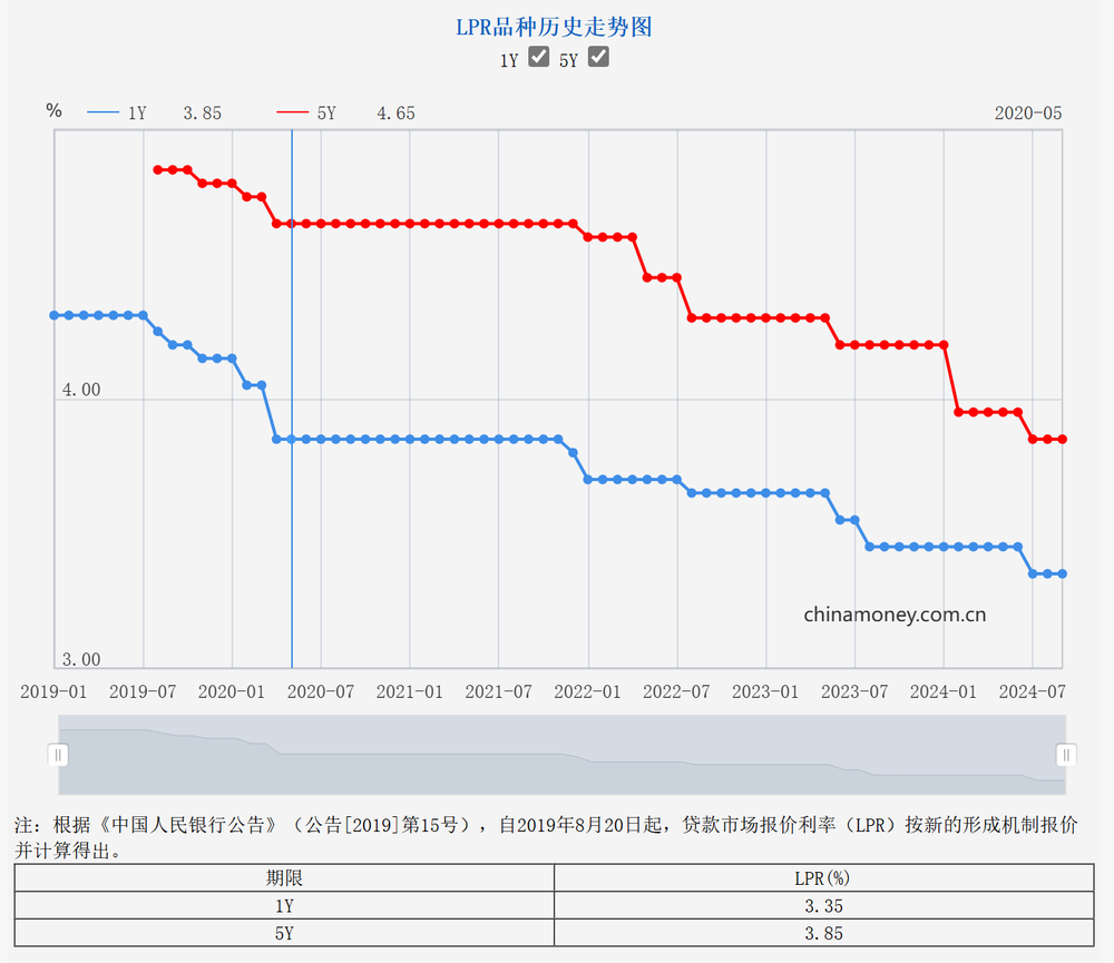 2024年9月20日,全國銀行間同業(yè)拆借中心公布新版LPR報價:1年期品種報3.35%,上月為3.35%;5年期以上品種報3.85%,上月為3.85%。數(shù)據(jù)顯示,最新LPR維持不變,這使得市場預(yù)期落空。