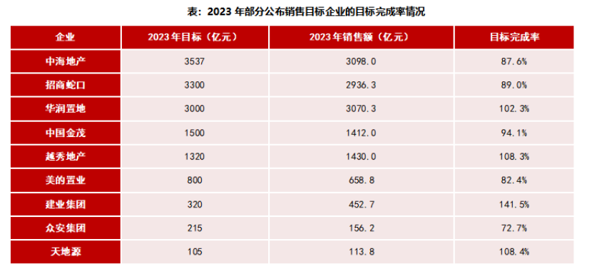 從銷售目標完成率來看,2023年,9家房企目標完成率均值為98.5%,其中華潤、越秀地產、建業(yè)集團、天地源完成全年目標。