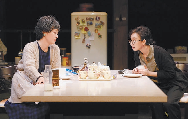 “《晚安,媽媽》沒有大的戲劇沖突,所有的矛盾都來自真實的生活,通過合情合理的人物關(guān)系和環(huán)環(huán)相扣的對話,去撥開日常生活之下翻滾的心?!碧茻钚稳荩@是一部沒有借助所謂的“手段”的作品,100分鐘的演出真誠動人,靠的是扎實的舞臺實景和兩位演員牽動肺腑的表演——冰箱里塞滿食物,杯子盛著冒白氣的熱巧克力,水龍頭能擰出自來水,沒有刻意的音樂和效果,整座舞臺如同真實生活的切面。演員需要在“做家務(wù)”的同時進行快節(jié)奏、高密度的對話,“手上不能停,但也不能攪戲,比如母女倆換沙發(fā)套的那一段,我們就練了很久很久。”唐燁說。