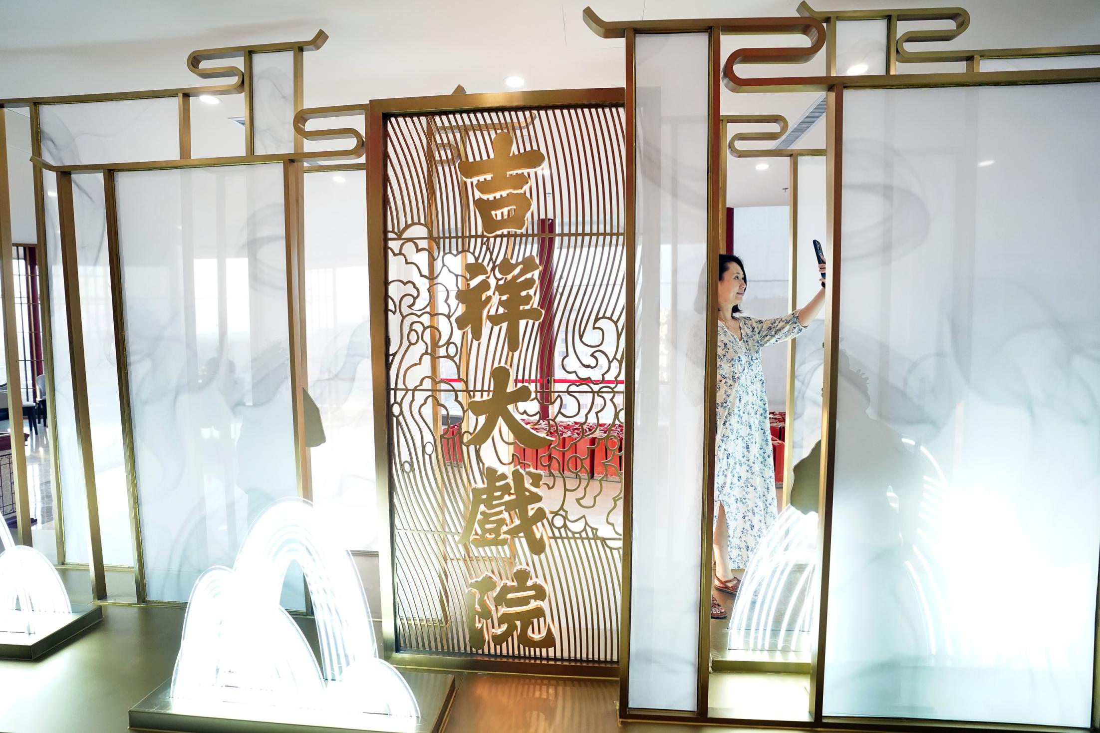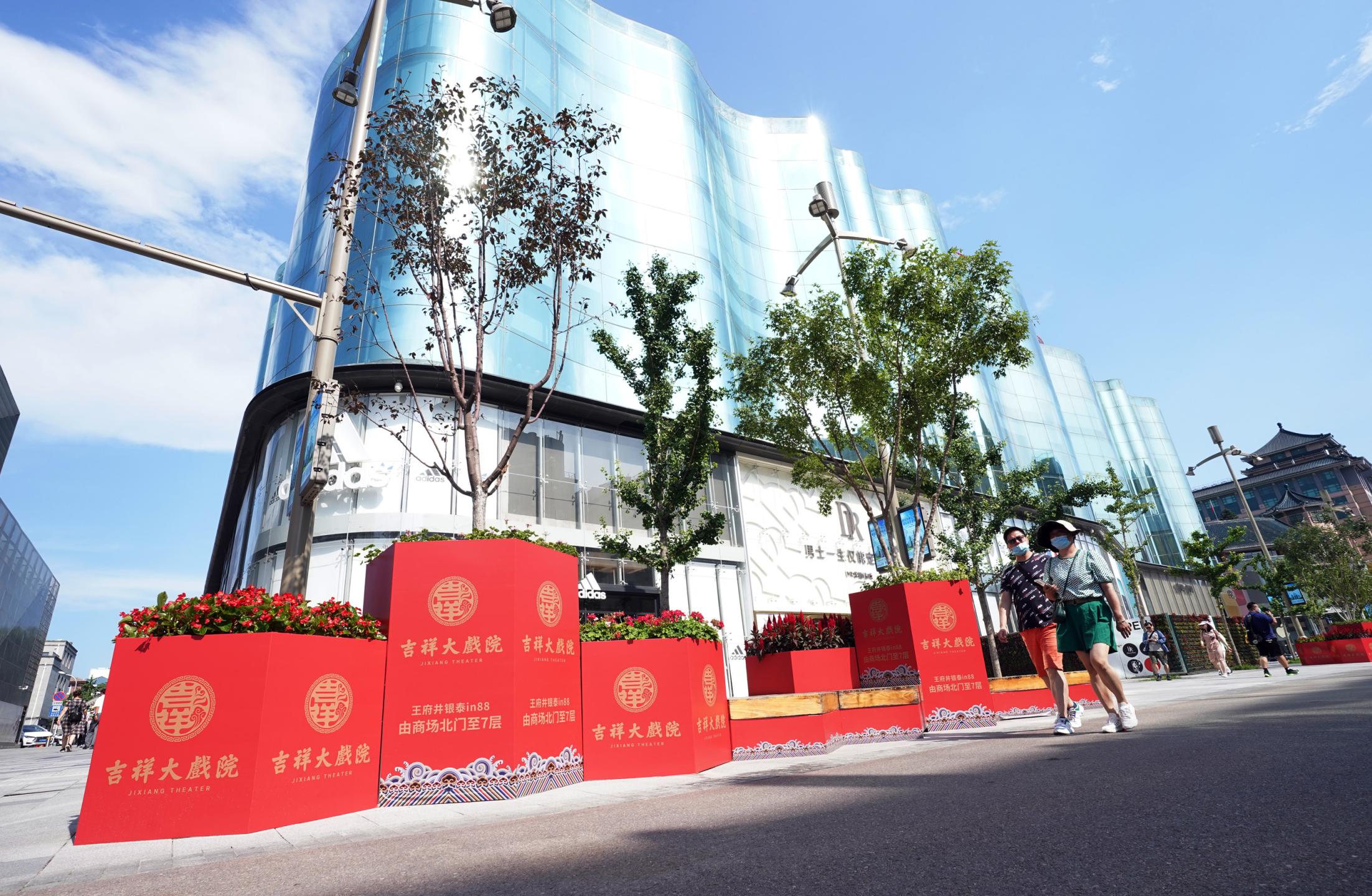 2021年7月9日,時隔28年,由北京市文化和旅游局、北京市國有資產(chǎn)經(jīng)營有限責任公司共同出資,北京京劇院、北京市演出有限責任公司共同運營的吉祥大戲院重張啟幕。這座“藏身”于銀泰in88大廈7層、8層的空中戲院占地面積達4000平方米。乘電梯上樓,初入眼簾的前廳清新雅致,落地窗外可見王府井熙攘的人群與遠處故宮、景山等古都風光;劇場內(nèi),明清風格古樸莊重,藻井彩繪繁復斑斕,傳統(tǒng)的“旋子彩繪”上增加了大量寓意吉祥的“萬字不到頭”圖案,與戲院的名字彼此呼應。