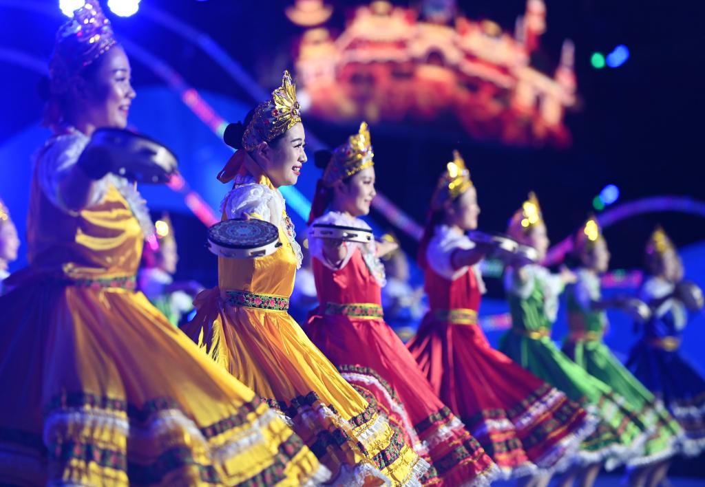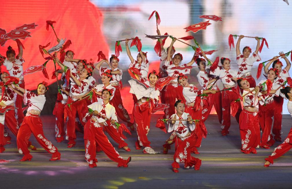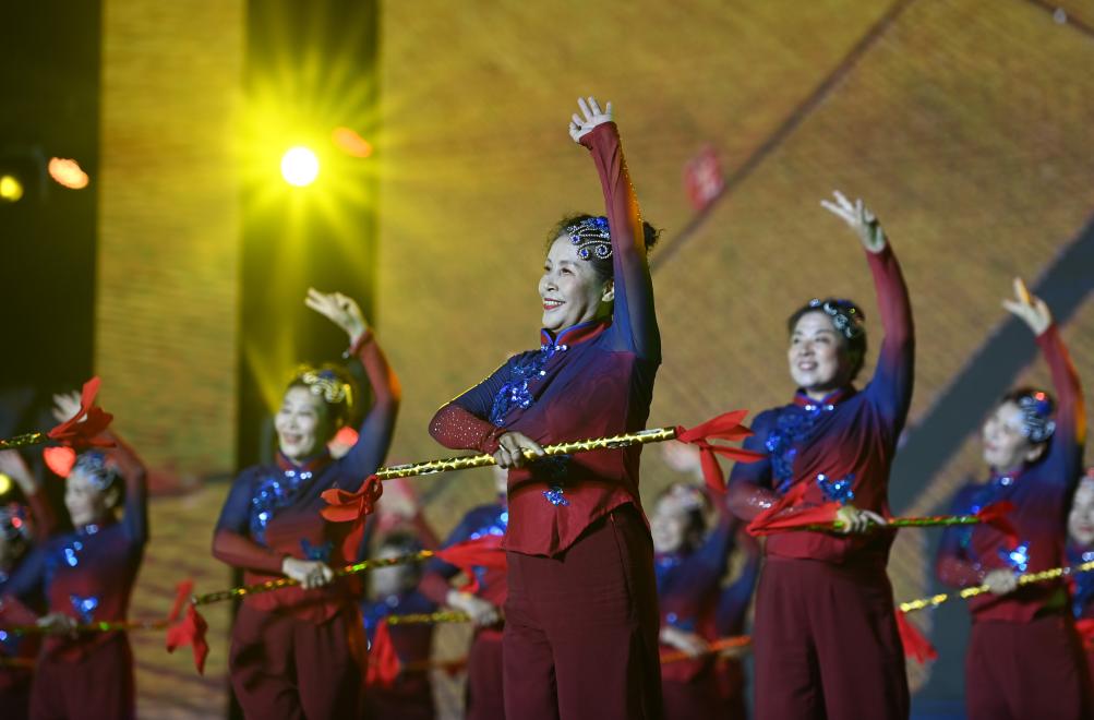 9月10日,參加展演活動(dòng)的廣場舞團(tuán)隊(duì)在表演。新華社記者 趙子碩 攝