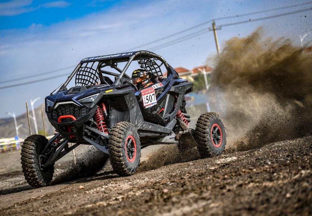 10月4日,北京山頂?shù)儡囮?duì)車手苑意在UTV組場(chǎng)地排位賽中。新華社記者 馮開(kāi)華 攝