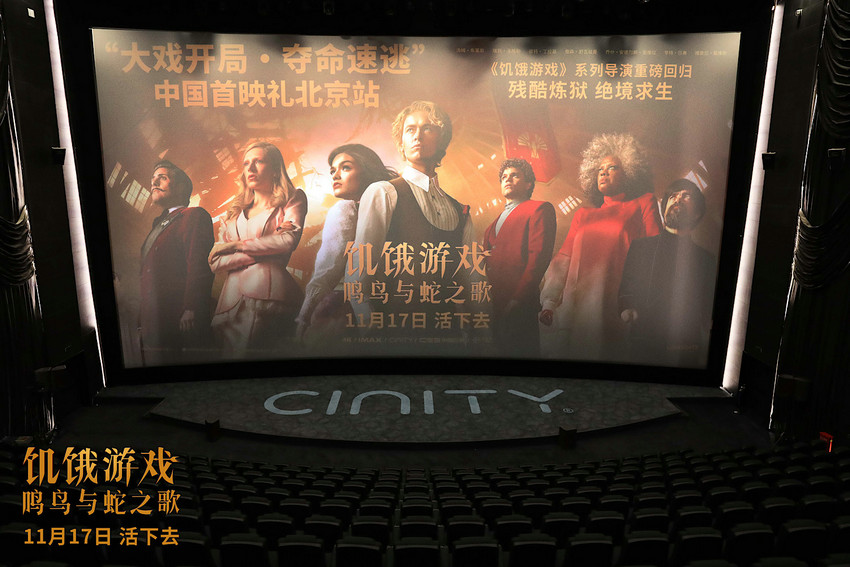 電影《饑餓游戲:鳴鳥與蛇之歌》于11月14日舉辦“大戲開局·奪命速逃”中國首映禮,分別在北京與南京兩地與影迷朋友們提前見面,現(xiàn)場(chǎng)不僅有“奇跡戰(zhàn)歌”循環(huán)播放,帶人一秒入戲;更有主演湯姆·布萊斯和導(dǎo)演弗朗西斯·勞倫斯二人的問候視頻播出,影片將于11月17日以4K/IMAX/CINITY/CGS中國巨幕/4DX/DTSX版本全球同步上映。
