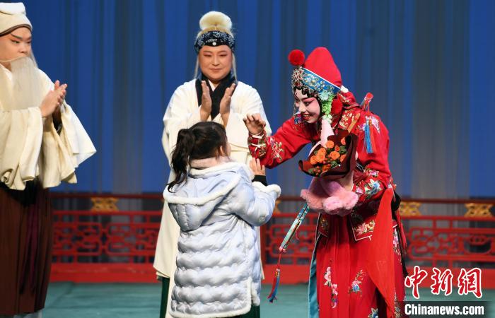 演出結束后,該劇主演劉泳渤謝幕間隙與一名走上舞臺的女童互動。 中新網記者劉可耕攝