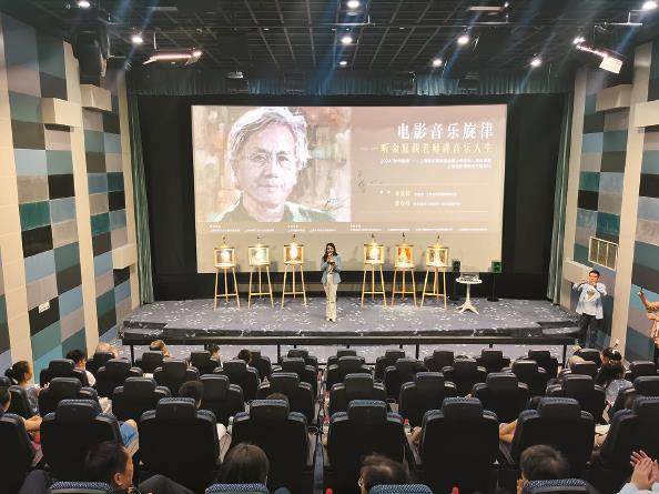 走進電影博物館的藝術(shù)影廳,可以看到大銀幕前放置了六幅油畫肖像,分別是賀綠汀、黃準、呂其明、陳傳熙、湯沐海等與電影音樂創(chuàng)作密不可分的作曲家——這些肖像正出自賀壽昌之手。今年82歲的金復(fù)載自25歲起從上海音樂學(xué)院畢業(yè)之后,就進入動畫片和電影配樂領(lǐng)域。而他退休后,還一腳踏入了如今十分興盛的音樂劇,成為上海音樂學(xué)院音樂劇系的首任系主任。因此,他的音樂生涯,始終是“時代旋律”。他見證了廣受大眾喜愛的電影、動畫、音樂劇音樂的發(fā)展歷程?,F(xiàn)場播放了央視為他拍攝的紀錄片,畫面上呈現(xiàn)了他的代表作——電影《紅河谷》、動畫片《哪吒鬧?!贰度齻€和尚》《雪孩子》,還有電視劇《濟公》里的“鞋兒破、帽兒破……”讓現(xiàn)場不同年齡的觀眾都回憶起各自的美好童年……