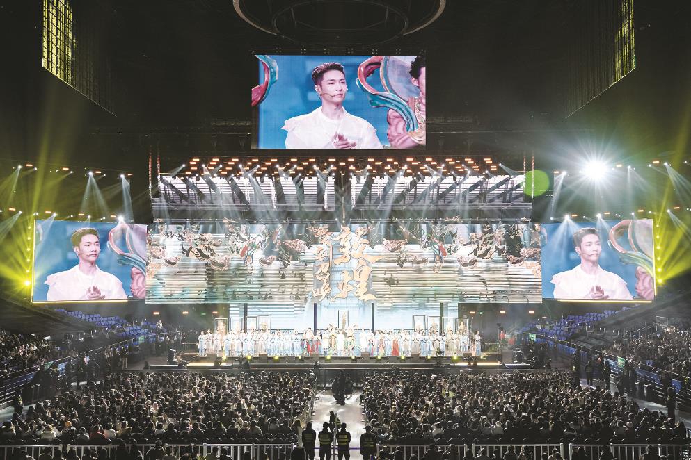 連續(xù)三晚,以數(shù)字多媒體營造“敦煌空間”,用多元風(fēng)格的歌舞訴深情,這場百年追尋、千年回響將人們引入一個與我們所有人相關(guān)的敦煌。當(dāng)音樂話劇的形態(tài)與敦煌在數(shù)字時代的煥新達成內(nèi)在氣質(zhì)的高度契合,一次又一次,中華文脈在青春的律動中擁抱觀眾。