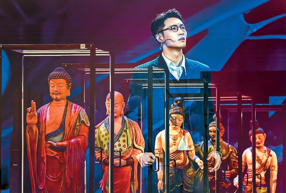 國(guó)家話劇院音樂(lè)話劇《受到召喚·敦煌》的舞臺(tái)上,張藝興的殺手锏是“真誠(chéng)”,臺(tái)詞真誠(chéng)、演唱真誠(chéng)、肢體語(yǔ)言更真誠(chéng)……從1935年的常書鴻到2035年的張燃,橫跨100年的兩個(gè)人被張藝興以真誠(chéng)連接,最終殊途同歸。距離2024年演出收官將近半年的時(shí)間,這艘承載著文化使命的巨型航母再度起航,南京、蘭州、成都……一步一蓮花,在行走中“修行”。如果說(shuō)一部話劇讓敦煌不止于學(xué)界,更屬于每個(gè)人,那么這部舞臺(tái)鴻篇也遠(yuǎn)遠(yuǎn)超出了一臺(tái)戲的范疇,成了主演張藝興和劇組的精神原鄉(xiāng)。