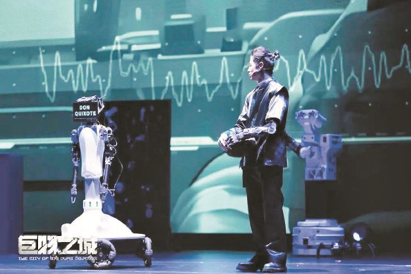 這是國(guó)內(nèi)首部機(jī)器人戲劇《巨物之城》的演出現(xiàn)場(chǎng)。演員與機(jī)器人一同完成了80分鐘的表演,謝幕后,臺(tái)下觀(guān)眾涌上舞臺(tái),爭(zhēng)相與“堂吉訶德”“麒麟臂”“嵐”等機(jī)器人合影、問(wèn)好。機(jī)器人——這個(gè)在日常生活中還頗為“遙遠(yuǎn)”的形象,第一次以情感表達(dá)者的身份,走近了普通觀(guān)眾。