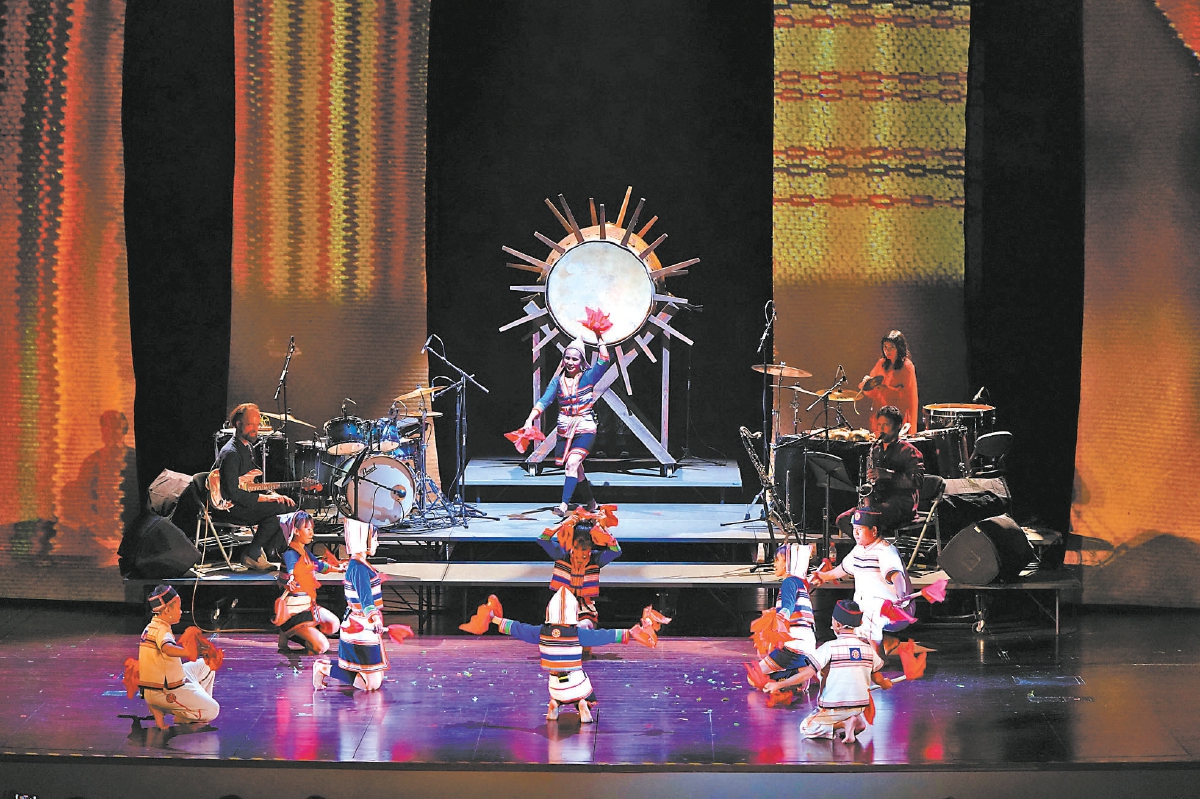 10月12日晚,一場將云南深山原始生命力融合跨越時(shí)空藝術(shù)想象力的演出登上北京舞臺(tái)。作為第二十八屆北京國際音樂節(jié)的重磅演出之一,由普利策音樂獎(jiǎng)得主、華人作曲家杜韻傾力創(chuàng)作,北京國際音樂節(jié)與美國林肯中心聯(lián)合委約的音樂劇場作品《刻在森林的?!吩诒本┫矂≡菏澜缡籽?。來自云南西雙版納的非遺項(xiàng)目基諾族大鼓舞傳承人何桂英,帶領(lǐng)8位基諾族少年,在舞臺(tái)上敲響大山里特有的聲音。