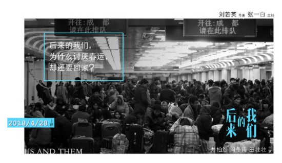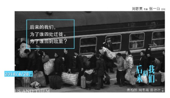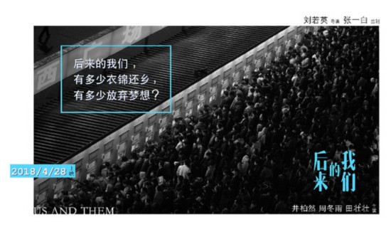 劉若英導(dǎo)演電影處女作《后來(lái)的我們》昨天(11日)發(fā)布第一波海報(bào)與預(yù)告,并宣布定檔4月28日。該片由張一白監(jiān)制,井柏然、周冬雨領(lǐng)銜主演,田壯壯主演。值此春運(yùn)回家高峰期發(fā)布的系列海報(bào),用質(zhì)問(wèn)的方式帶出人生與春運(yùn)的現(xiàn)實(shí)主題:〝為什么只有過(guò)年,才會(huì)想到回家?〞、“為什么討厭春運(yùn),卻還要回家?”、“為什么在擁擠的人群里,還覺(jué)得自己孤身一人?”等,直戳觀眾內(nèi)心,引發(fā)熱議。劉若英導(dǎo)演也希望透過(guò)春運(yùn)的提問(wèn),讓這個(gè)愛(ài)情故事更貼近現(xiàn)實(shí)生活與人生感動(dòng)。