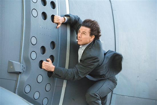 《碟中諜5》中,阿湯哥上演了“扒飛機(jī)”,并在沒有任何防護(hù)的情況下在飛行的飛機(jī)外部堅(jiān)持了90秒。后來他透露,自己的肋骨差點(diǎn)被飛來的小石頭砸斷。