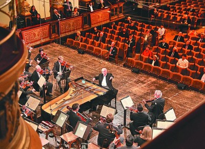 6月5日,維也納愛樂樂團(tuán)在維也納金色大廳舉行新冠肺炎疫情解封后的首場音樂會。根據(jù)防疫規(guī)定,現(xiàn)場觀眾人數(shù)被限定在100名。新華社發(fā)
