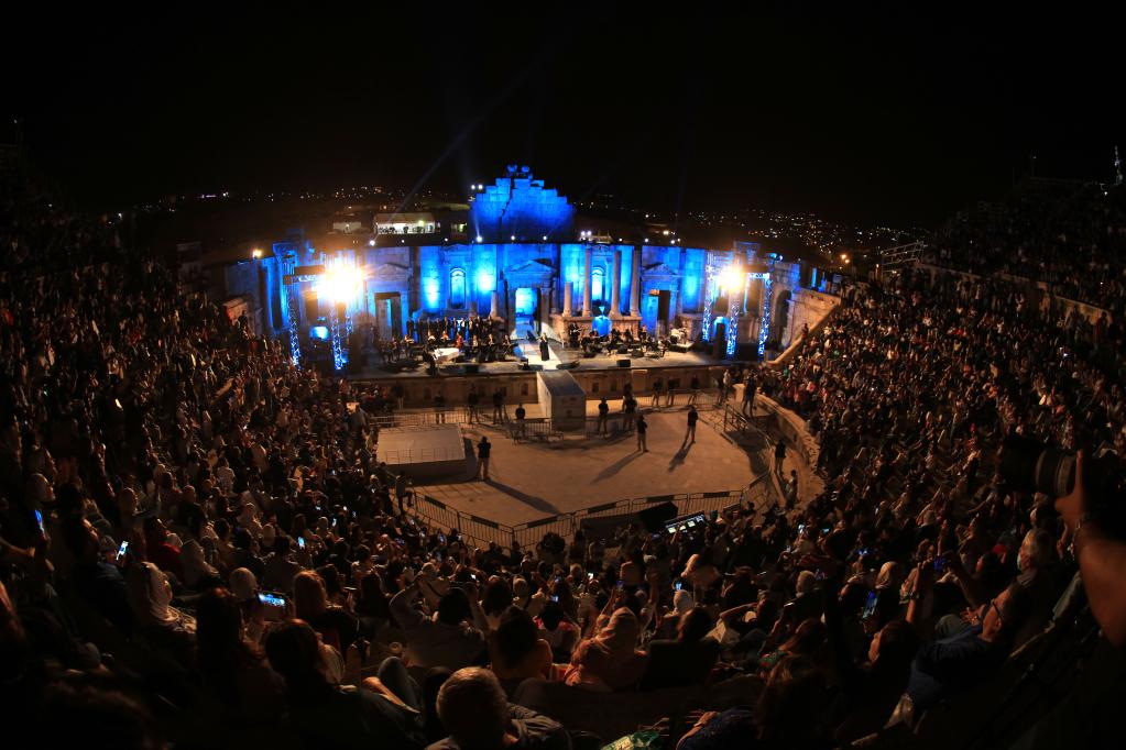 9月22日,人們觀看約旦杰拉什文化藝術(shù)節(jié)開(kāi)幕式表演。 約旦杰拉什文化藝術(shù)節(jié)22日在杰拉什開(kāi)幕,為期11天的藝術(shù)節(jié)將為觀眾帶來(lái)演唱會(huì)、舞蹈、戲劇等各類精彩紛呈的演出。 新華社發(fā)(穆罕默德·阿布·古什攝)