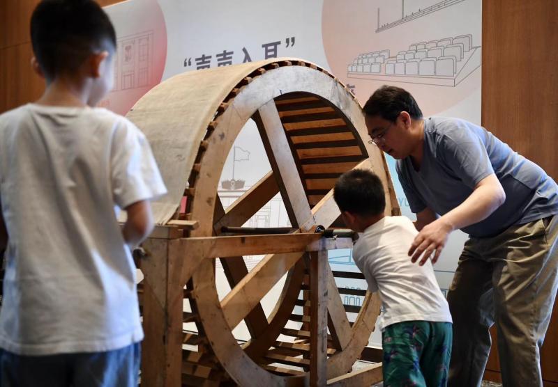 而看起來并不起眼的兩片三合板則是悶雷效果的制造者,隨著晃動,依靠空氣的震動,“雷聲”一聲緊似一聲,而這也成為經(jīng)典話劇《雷雨》中最重要的音效。雨聲則是靠扇子上串珠子的晃動營造出大珠小珠落玉盤的效果。據(jù)悉,早年間演出時,后臺的畫面也十分震撼,十幾個人一人拿一塊板子分兩側(cè)而立形成矩陣,在指揮的引導(dǎo)下次第晃動,鄭晨說,“在沒有電聲、沒有便攜錄音設(shè)備的年代,一場《雷雨》因此也生動傳神?!?/p>