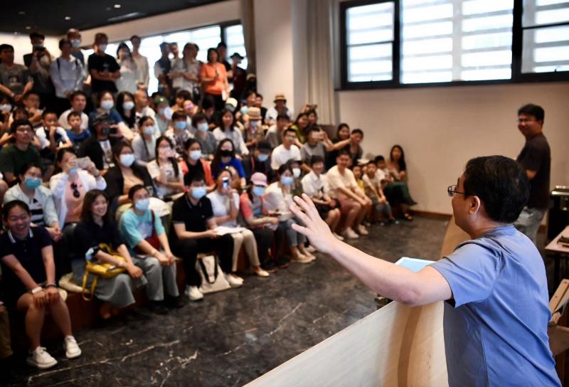 一樣樣示范后,鄭晨還和觀眾分享了一個自己的經(jīng)歷,“2005年復(fù)排《嘩變》,接到任務(wù)后我們正好赴美國演出《茶館》,于是我便帶上了《嘩變》的劇本想得空時熟悉下。那個戲其實(shí)給音效的空間并不大,只有汽笛聲、海鷗聲和軍歌。那次美國演出我們?nèi)チ伺f金山,巧合的是,在金門大橋下剛好是美國海軍基地太平洋艦隊(duì)司令部的舊址,正是《嘩變》劇本里劇情的發(fā)生地。于是我就在那里錄了當(dāng)時的環(huán)境音,海鷗以及海浪的聲音,聽著汽笛聲,感覺瞬時就穿越了。”現(xiàn)場,他為觀眾播放了自己當(dāng)時錄下的海鷗聲,而這個故事,鄭晨想傳遞給觀眾的是,音效作為話劇的一部分,每一部作品都希望聲音能與戲合拍,從中也能看到戲劇從業(yè)者的用心。