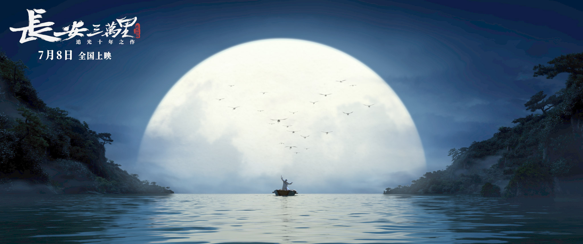 “明月照古今”版定檔海報中,李白肆意灑脫、高適躍馬縱橫,“詩圣”杜甫、“詩佛”王維、玉真公主、“唐代樂圣”李龜年、“草圣”張旭、大唐名將郭子儀、哥舒翰、李白的至交好友丹丘生以及裴十二圍繞在側,勾勒出一幅“大唐群星閃耀時”的詩意唐風畫卷。