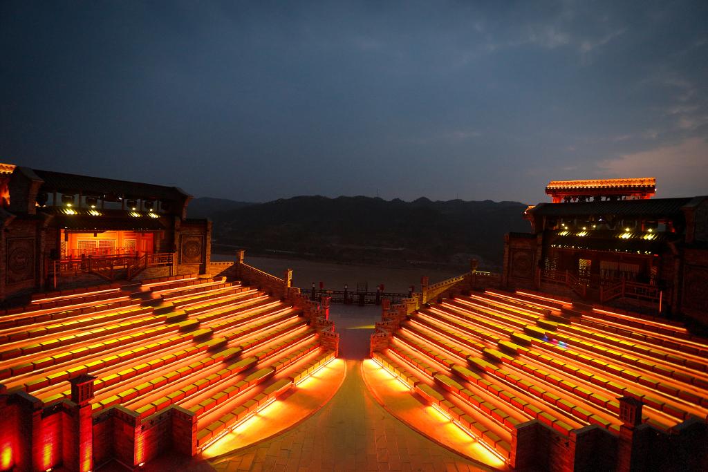 這是一場(chǎng)別樣的演出,山水和風(fēng)情在劇場(chǎng)里交相輝映。在“九曲黃河第一鎮(zhèn)”的磧口岸邊,在黃土高原呂梁山脈的懷抱里,觀眾坐在360度的露天旋轉(zhuǎn)觀演臺(tái)上,高科技舞臺(tái)技術(shù)和燈光投影矩陣的加持下,現(xiàn)代演藝手段和傳統(tǒng)文化相互融合。演員表演生動(dòng)投入,將黃河文化、晉商文化、民俗文化、紅色文化潤(rùn)于觀眾心中。