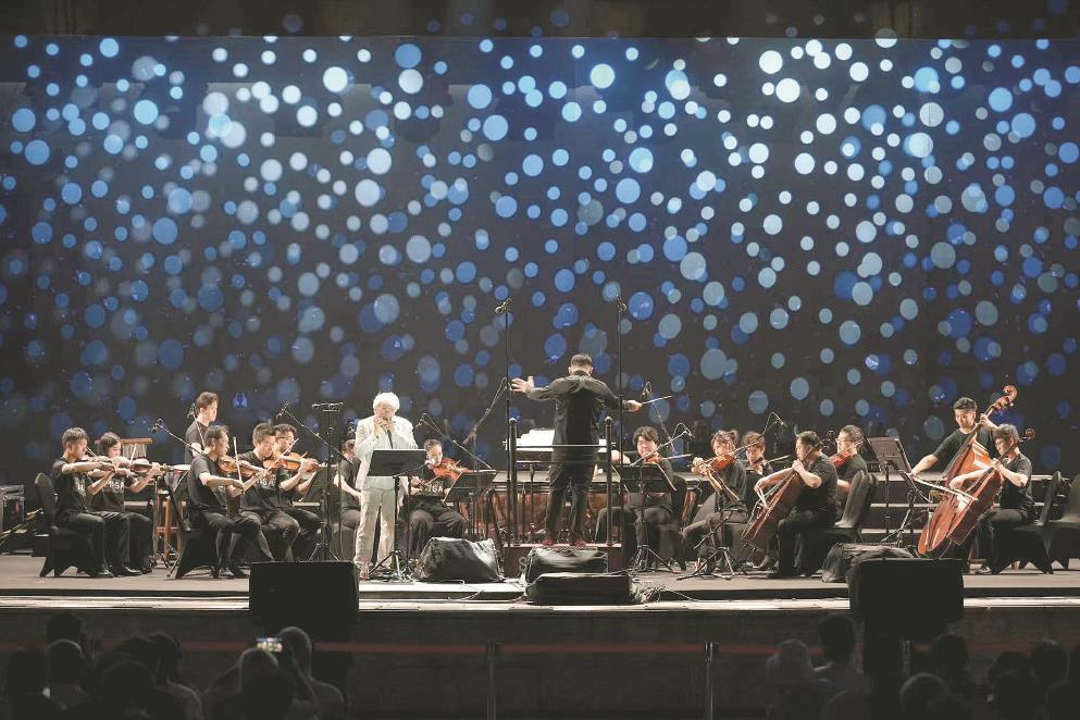 昨夜的上海城市草坪音樂廣場,因?yàn)樘礁甑穆蓜?dòng)而變得更加火熱。拉脫維亞手風(fēng)琴演奏家克塞尼婭·西多羅娃與上海友人室內(nèi)樂團(tuán)合奏,以皮亞佐拉的音樂為主線,從旋律火辣的《再見巴黎》到情感豐富的《五首探戈隨想》,點(diǎn)燃了戶外觀眾的熱情,彰顯上海夏日的無限魅力。