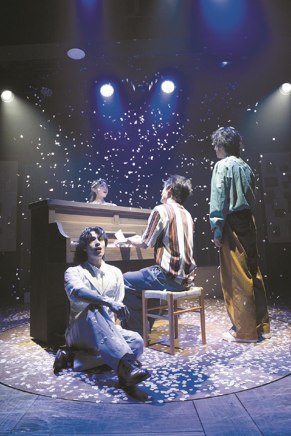 他們是用什么連接起那看似“前世有緣”的兩個(gè)故事的呢?主要不是“緣分”或“天命”,而是兩個(gè)藝術(shù)家的創(chuàng)作——就像制作該劇的“劇伙”主創(chuàng)團(tuán)隊(duì)自己所做的一樣。這個(gè)團(tuán)隊(duì)包括導(dǎo)演編舞劉曉邑,編劇作詞黃菀卿、陶倩妮、薛敏,作曲編曲徐肖、姚旭之,制作人和曉維,出品人張博禹。就像一面他們自己的鏡子,這是一部展示音樂(lè)劇創(chuàng)作過(guò)程的“元戲劇”(Meta-theatre)。