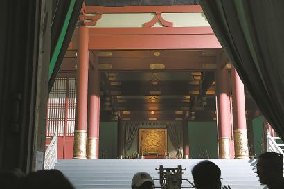 電影對京劇劇本做出適當改動,使劇情更加緊湊、連貫,同時突出了電影藝術的表現(xiàn)力。梁山辦公室里掛著巨大的《長恨歌》和舞美效果圖,他和攝制組反復聆聽京劇唱段。
