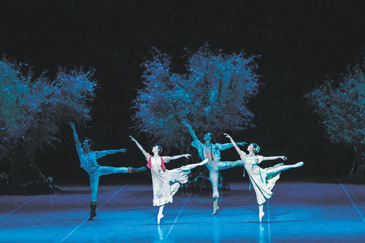當(dāng)黎明來臨,魔法消退,雅典城重歸平靜。戀人們的情感也在舞蹈中歸于和諧,赫米婭與拉山德、海麗娜與狄米特律斯的雙人舞充滿溫情與浪漫,展現(xiàn)了愛情最終的美好歸宿。當(dāng)門德爾松的《婚禮進(jìn)行曲》響起,舞者們在優(yōu)美的圓舞節(jié)奏中翩然起舞,嚴(yán)謹(jǐn)?shù)娜何铇?gòu)圖呈現(xiàn)古典芭蕾極致之美,深刻的情感表達(dá)和華麗的舞美設(shè)計,將莎士比亞筆下的奇幻愛情故事推向高潮,令觀眾沉醉在詩意與浪漫之中。