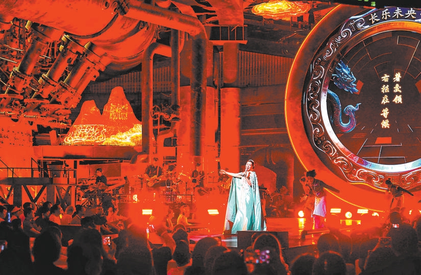 “在這里唱歌,能感受到歷史與未來的雙重回響?!毖莩鼋Y(jié)束后,常思思感慨道。她透露,為了適應(yīng)三高爐特殊的聲場環(huán)境,團隊專門調(diào)整了電聲樂隊與弦樂團的配器編制,讓音樂在工業(yè)空間中產(chǎn)生更具張力的共鳴。一夜歡歌,常思思用藝術(shù)的柔美與工業(yè)的粗糲對話,在首都北京留下獨特的文化記憶,“藝術(shù)家應(yīng)當成為連接不同時空的橋梁,我們讓鋼鐵聽見了歌聲,也讓歌聲記住了鋼鐵?!?/p>