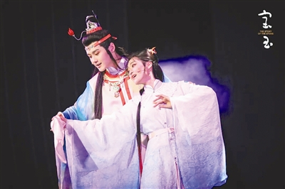 作為經(jīng)典IP改編的原創(chuàng)音樂劇,《寶玉》從創(chuàng)作過程到成型演出,持續(xù)引起外界廣泛關(guān)注和熱烈反響?!秾氂瘛氛缙涿?,以“寶玉”視角向眾人鋪開大觀園的離合悲歡。在有緣人對寶玉命運(yùn)的循循引領(lǐng)下,逐一展露寶玉的覺醒、黛玉的哀婉風(fēng)骨、寶釵的隱忍綿長、王熙鳳的潑辣悲愴等人物特質(zhì)。全劇以歌入情,以舞動(dòng)人,為觀眾呈現(xiàn)了一個(gè)紅樓獨(dú)特的音樂劇表達(dá)。對于耳熟能詳?shù)慕?jīng)典片段“寶黛共讀西廂”“黛玉葬花”“金玉良緣大婚”等,則通過“片段式敘事”與“閃回蒙太奇”手法串聯(lián)而起。