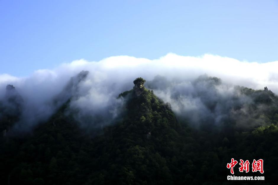 4月18日,雨過天晴的湖南張家界核心景區(qū)武陵源出現(xiàn)壯觀的“云瀑”景觀。雪白的濃云從峰林間向下翻騰,猶如天河傾瀉,氣勢磅礴。 吳勇兵 攝