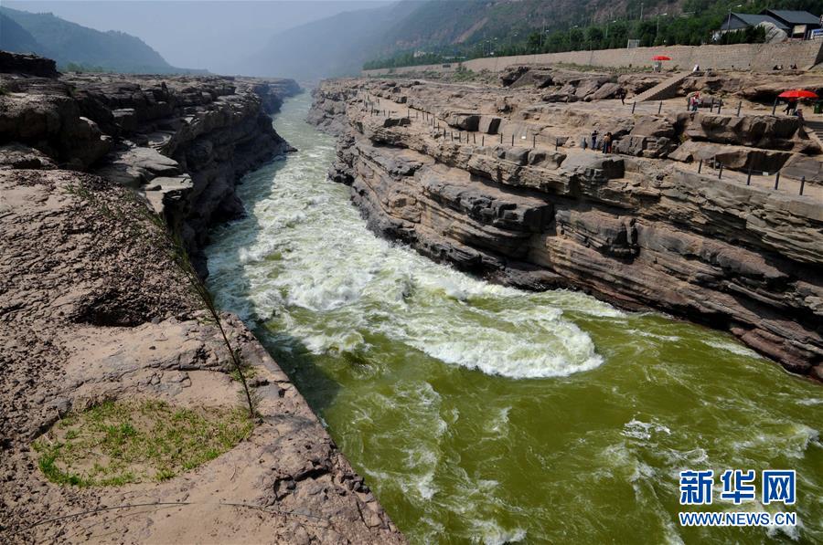 自4月下旬以來,受上游降雨偏少和黃河干流來水量減少影響,河水流速變緩,泥沙沉淀,位于山西吉縣和陜西宜川縣交界的壺口瀑布水色明顯變清,呈現(xiàn)出別于日常的“清流飛瀑”景觀。新華社發(fā)(呂桂明 攝)
