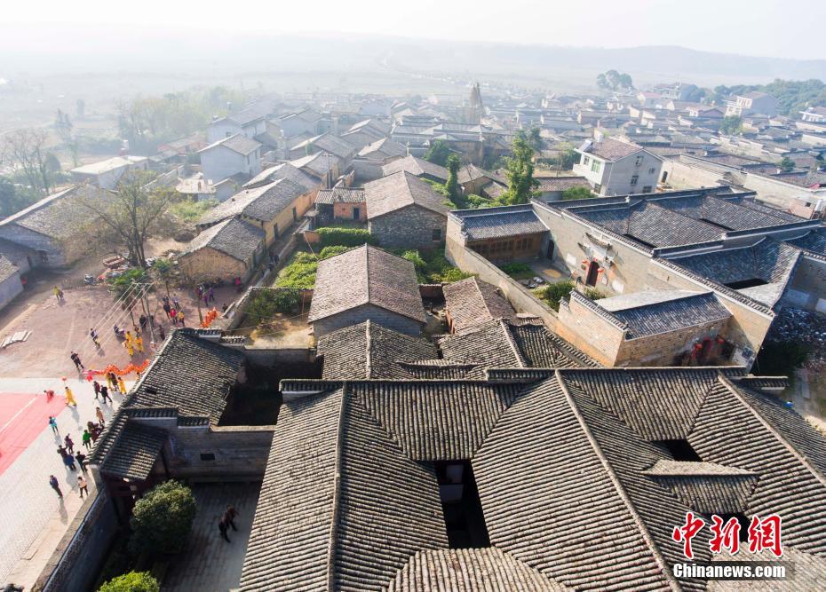 航拍江西竹橋古村 古風(fēng)濃郁蔚為壯觀