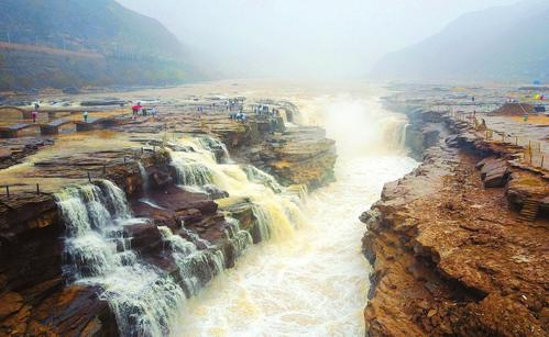 受氣溫回暖和上游融冰開河影響,3月20日,黃河壺口瀑布迎來一年一度的“桃花汛”,水流量達到每秒1080立方米。 本報拍客 呂桂明 攝影報道