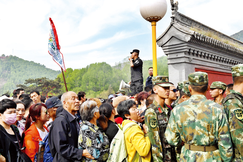 5月19日中國旅游日,佛教圣地五臺山實行三免費(免進山費、免景點門票費、免觀光旅游車費),當日,來自海內(nèi)外的游客呈現(xiàn)“井噴”,總人數(shù)達106360人,是近年來單日人數(shù)之最。忻州公安出動精干警力,精心組織、超前謀劃、晝夜無眠,實現(xiàn)了全山大局穩(wěn)定,道路暢通,整個景區(qū)平安、和諧、有序。