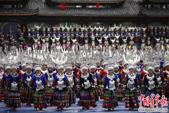 11月23日,來自美國、加拿大、澳大利亞、泰國、法國、老撾等20多個國家和廣西、四川及貴州凱里、興仁、從江等20多個地區(qū)的苗族同胞慶祝團隊齊聚貴州省雷山縣,與16萬雷山苗族人民歡度苗年。整個苗年慶祝活動將持續(xù)14天。 中國青年報·中青在線記者 白皓/攝