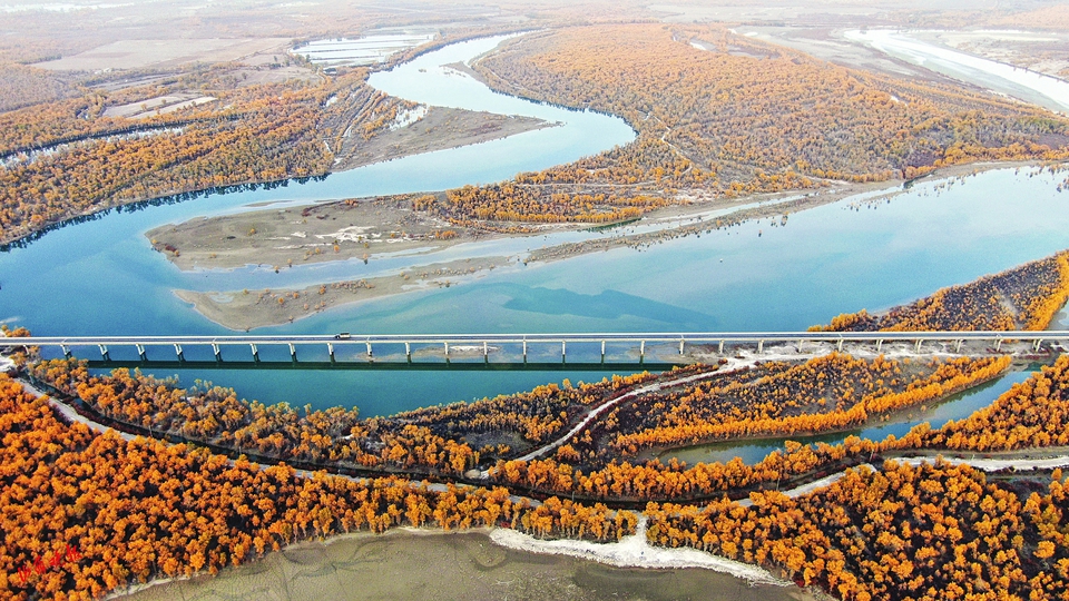 深秋時(shí)節(jié),新疆塔里木河流域胡楊林披上“金裝”,與碧水、大漠相互映襯,構(gòu)成一幅秀美的生態(tài)畫卷。新疆沿塔里木河流域分布著約1500萬(wàn)畝胡楊林,是世界面積最大的胡楊林區(qū)。