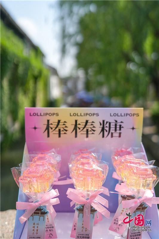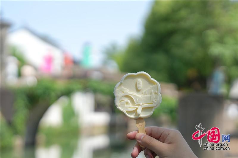 冰激凌融化的第一口,“古牌樓”棒棒糖戴著蝴蝶結突發(fā)奇想,發(fā)著光:“姑蘇繁華,最明周莊”。