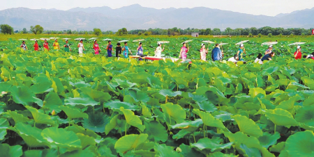 7月,正是荷花盛開(kāi)的好時(shí)節(jié),在定襄縣馬城滹沱人家的“十里荷塘”賞荷花、聞荷香、攝影拍照、吟詩(shī)歌唱……既可以欣賞“接天蓮葉無(wú)窮碧,映日荷花別樣紅”的魅力景色,還可以享受“四面垂楊十里荷,問(wèn)云何處最花多”的閑適生活。