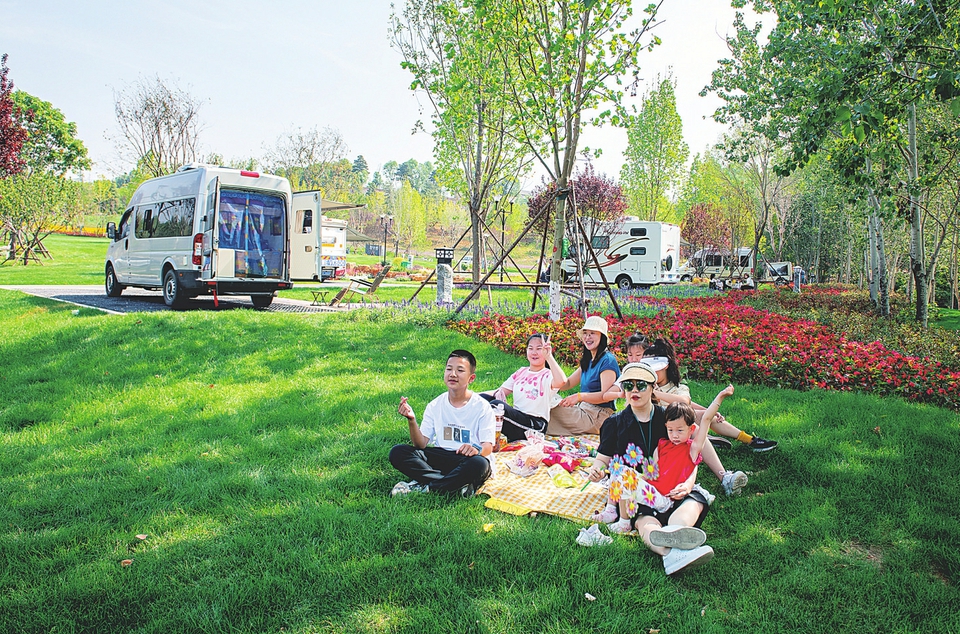 不僅民宿迎來(lái)眾多客流,各景區(qū)的露營(yíng)活動(dòng)也吸引了大量避暑游客。在圣天湖景區(qū)的房車(chē)帳篷營(yíng)地,游客可以在此開(kāi)展房車(chē)露營(yíng)、燒烤、自助特色餐飲、草坪親子、篝火晚會(huì)等多種活動(dòng)。