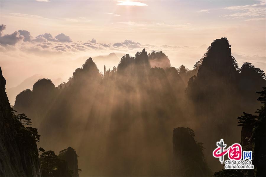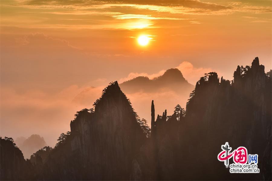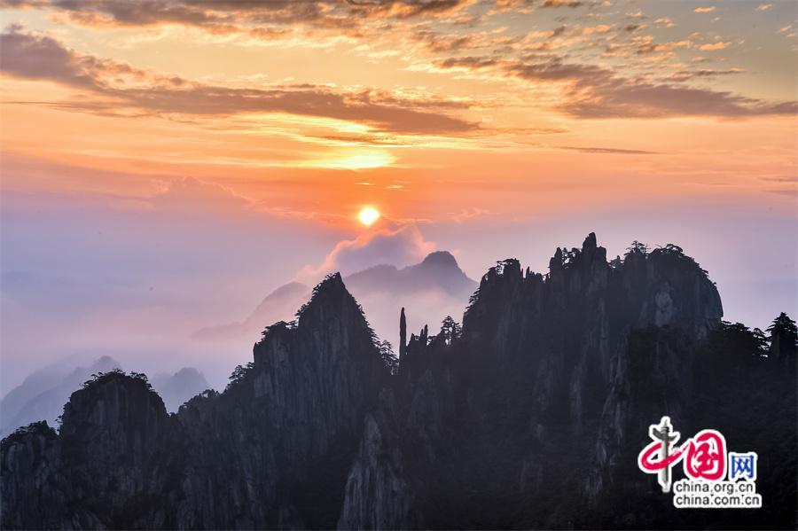 安徽黃山:立秋日彩霞、紅日、云海同框(圖)