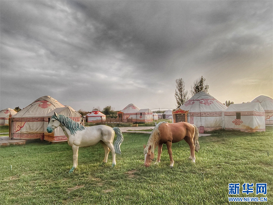 造型獨特的雕塑與蒙古包相互映襯,盡顯草原文化魅力。