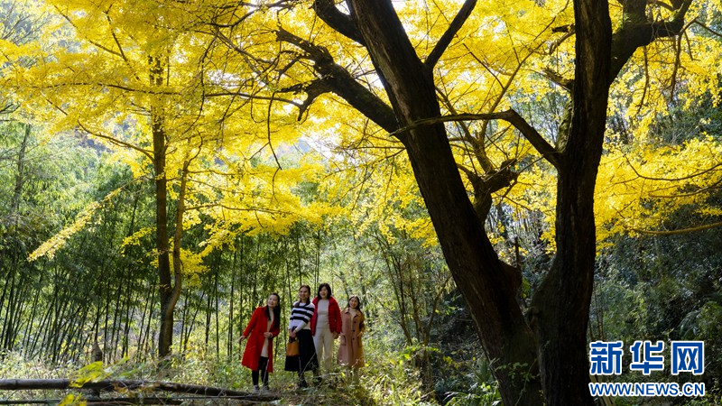 ?初冬,金色的陽(yáng)光灑在湖北省南漳縣李廟鎮(zhèn)的山林中,宛如大自然無(wú)意中打翻了調(diào)色盤,呈現(xiàn)出紅色、金色、綠色交織的絢麗色彩,美如一幅幅畫(huà)卷。(華君、 劉思)