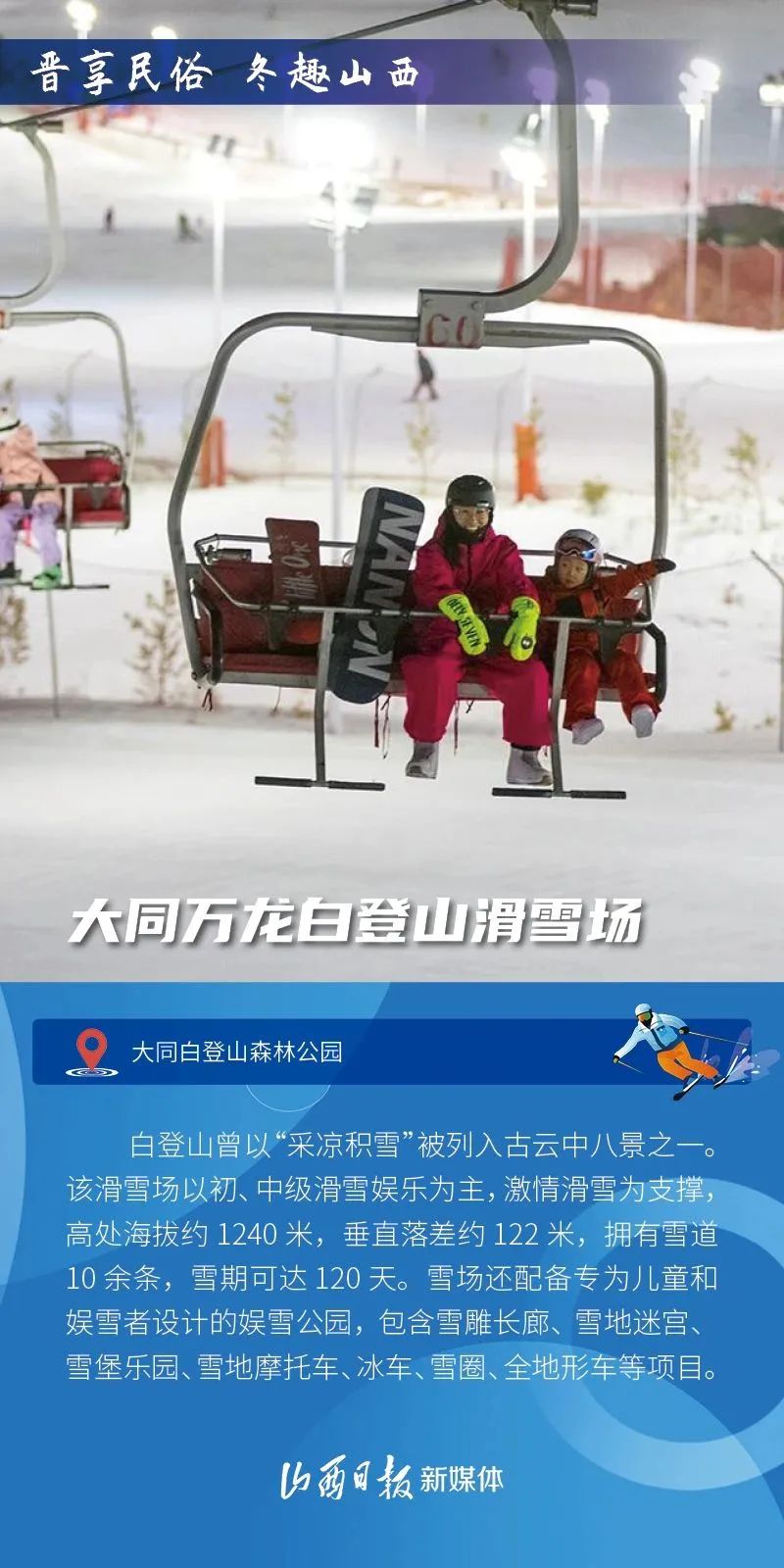 迎來新雪季,省內不少滑雪場陸續(xù)開門迎客,部分進入淡季的山水景區(qū)也開始“轉戰(zhàn)”冰雪項目,開啟冰雪狂歡。這個冬天,做好準備,跟隨山西省文化和旅游廳發(fā)布的“十大滑雪目的地”,開啟一場馭雪凌風之旅吧!